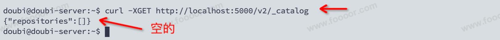 curl -XGET http://localhost:5000/v2/_catalog因为 Registry 就是在当前机器上,所以使用 localhost。