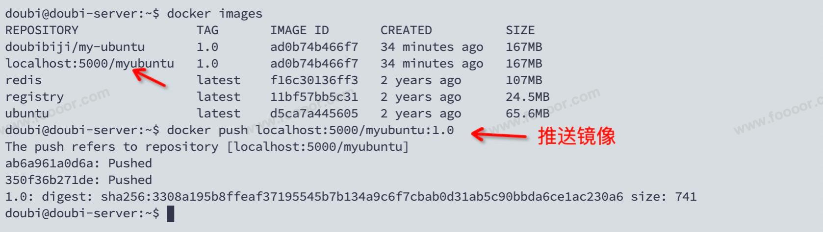 下面将安装了我们想要的程序的 Ubuntu 镜像,推送到我们的私有镜像仓库。