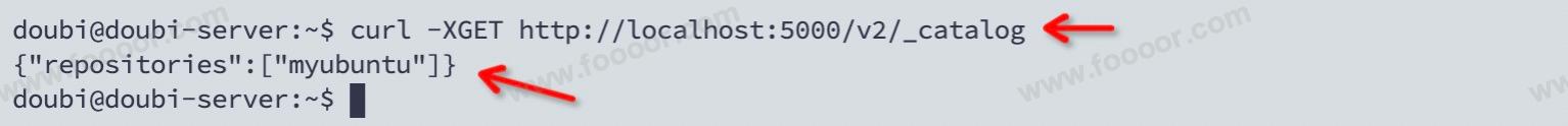 curl -XGET http://localhost:5000/v2/_catalog可以看到上传的镜像: