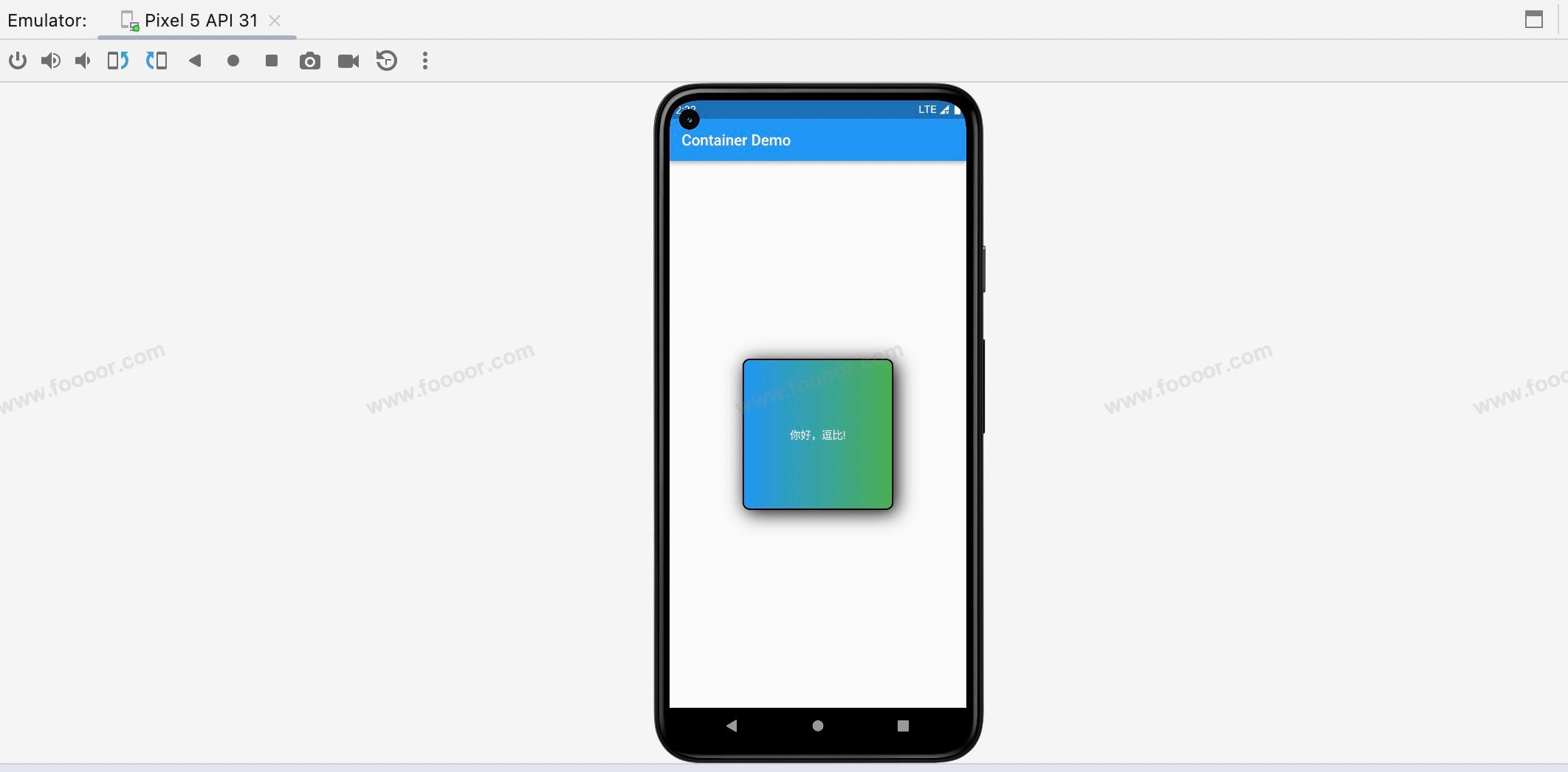 下面我们通过 Container 实现下面的效果,下面居中的部分就是一个 Container 。