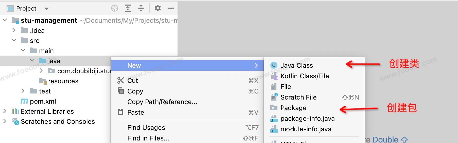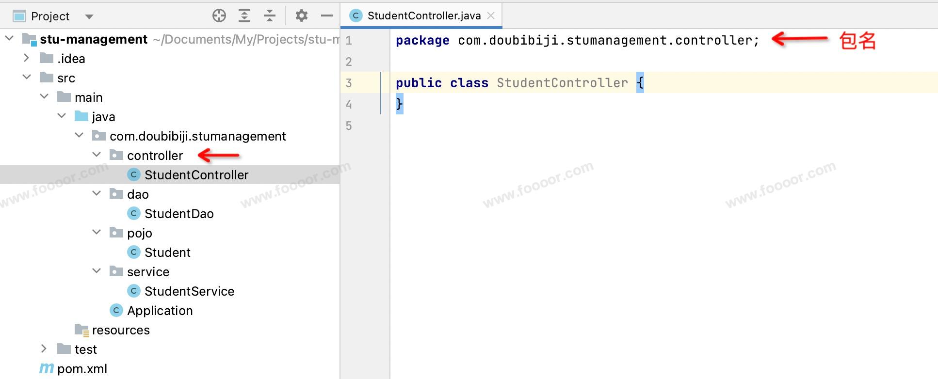 例如,我们有一个学生管理系统的项目,那么包名可以定义为 com.doubibiji.stumanagement 。因为一个项目中,不同的类负责不同的功能,还可能进行分层的设计,所以在这个包名下,还可以再进行子包的划分,将不同功能的类规划到不同的子包中。