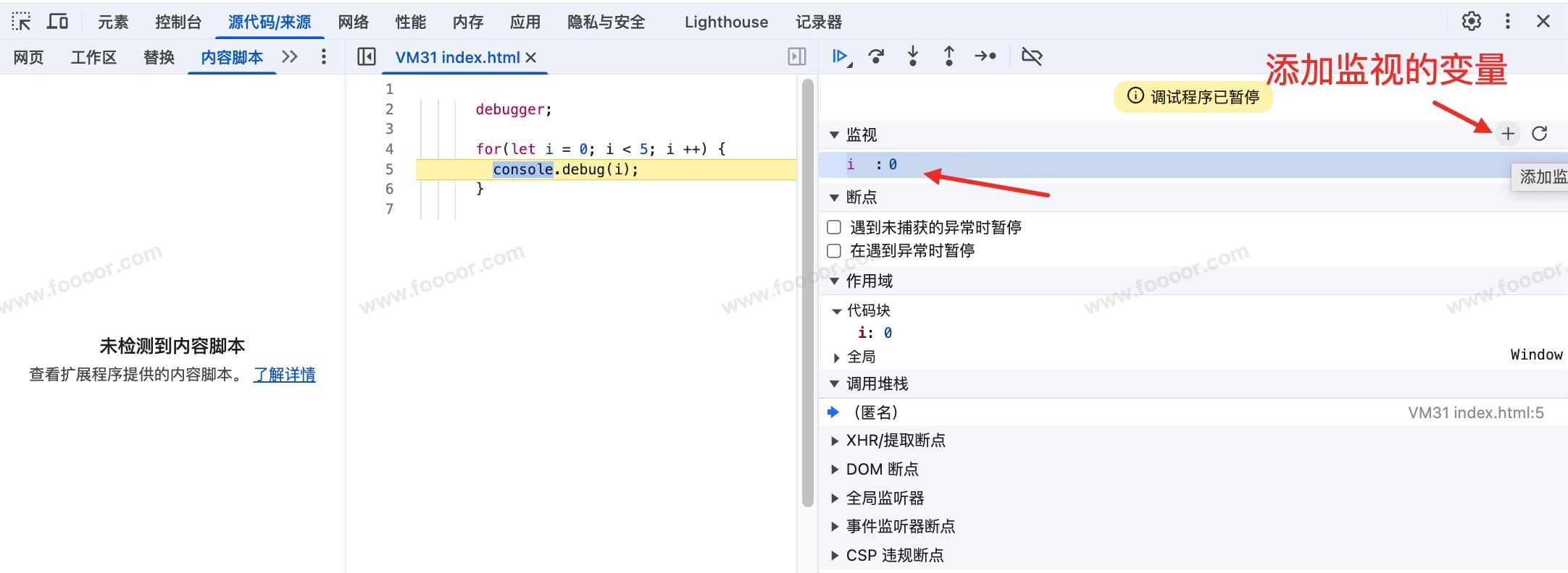 </script>- 上面的程序,执行到 debugger 的地方,会停住,等待调试。