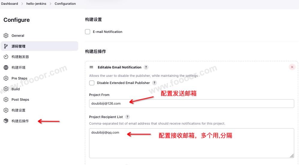 如果针对 Failure 和 Success 也配置接收人列表,则会发送两次邮件,所以如果有 Failure 和 Success,就将其删掉。