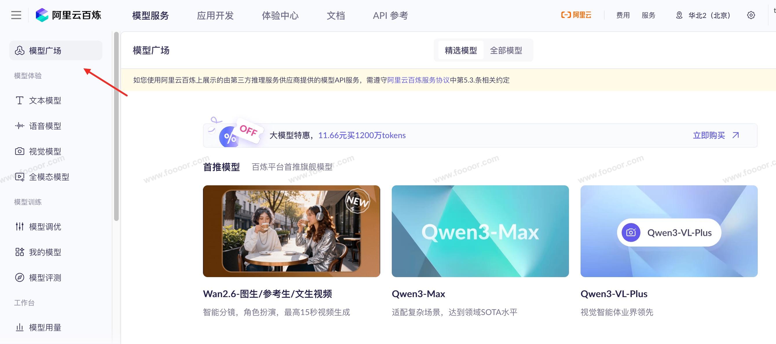 我们选择使用阿里云的百炼平台,因为它提供了很多大模型,而且还有一些免费的使用额度。