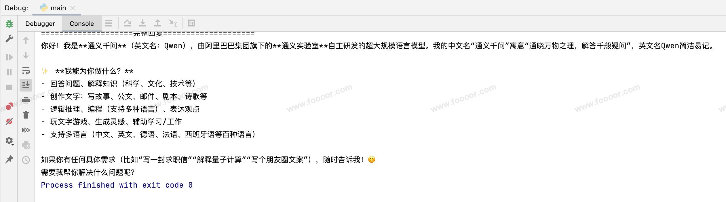 我们已经可以使用代码调用大模型了,代码细节先不用纠结,后面的章节还会讲。