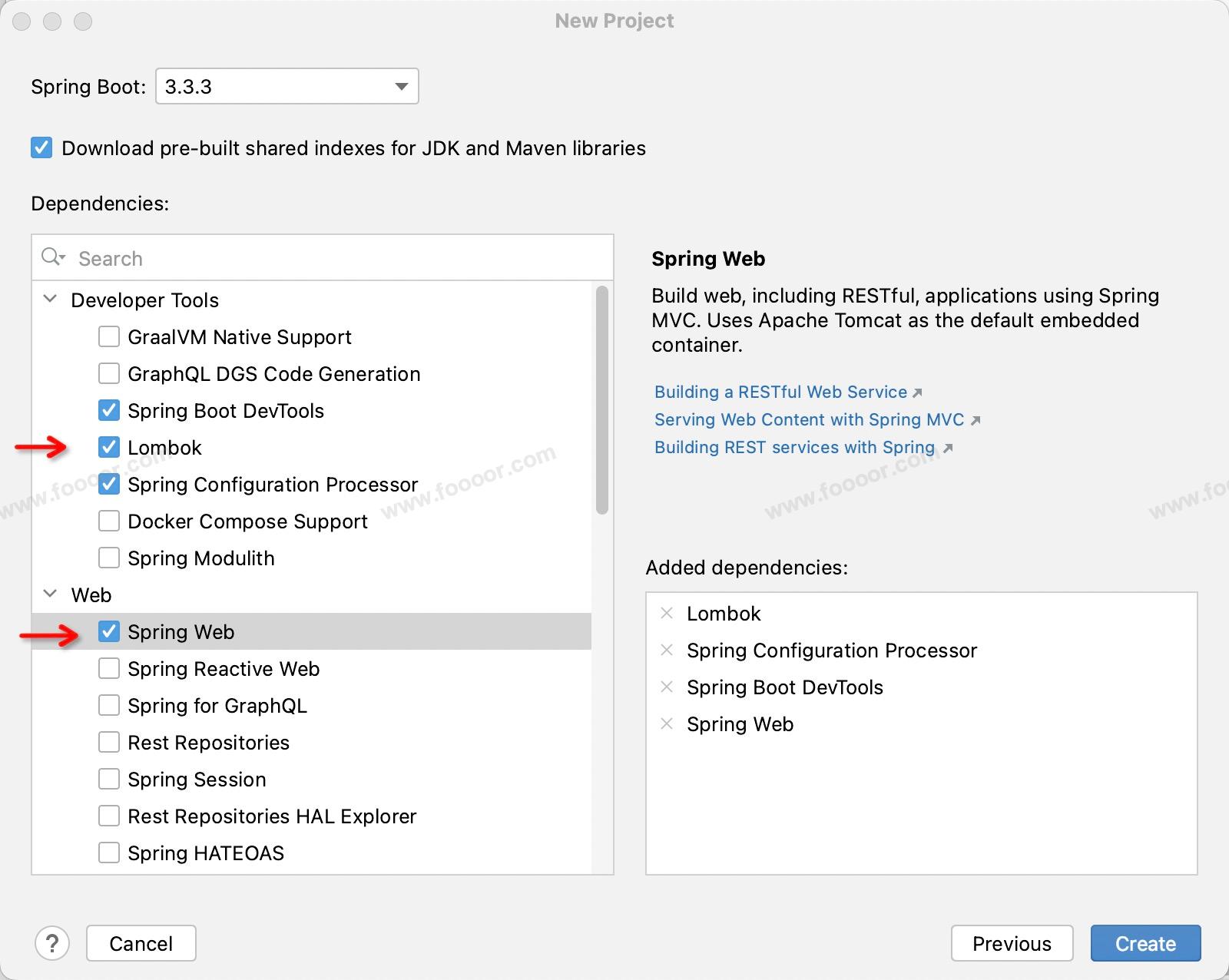 选择项目依赖,勾选如下依赖: