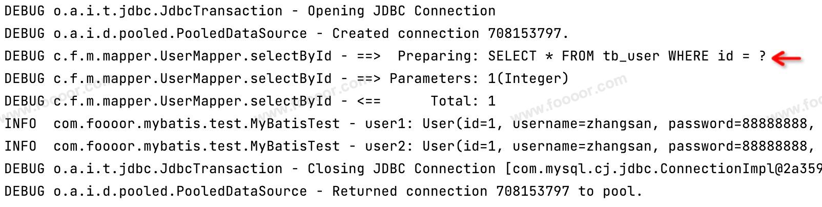 同样,获取使用 SqlSession 获取两次 Mapper,执行查询,也是只有一条 sql,因为都是使用同一个 SqlSession ,如下: