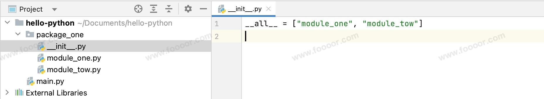 修改package_one包下的 __init__.py文件,设置允许导入的模块名称。