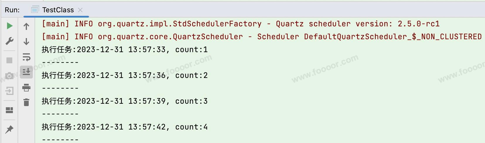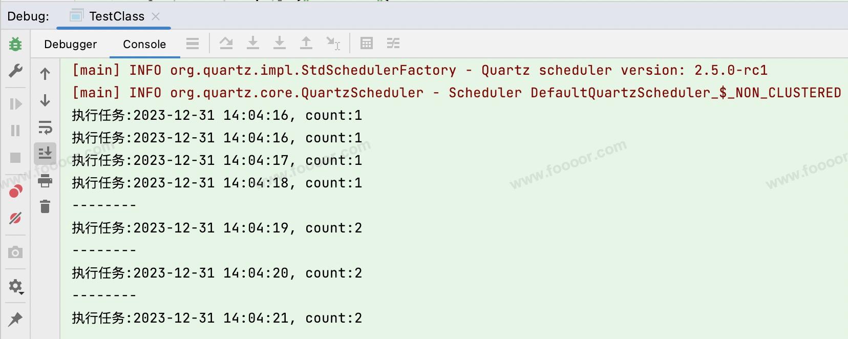 }首先从 JobDataMap 中获取到 count,然后修改 count 的值,然后重新将 count 的值保存到 JobDataMap 中,这样下一次任务执行的时候,就可以获取到更新后的值。