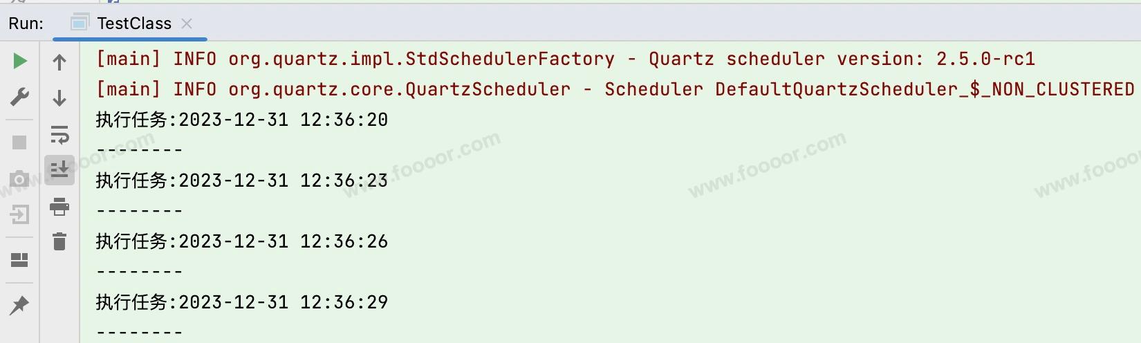 给 Job 类添加 @DisallowConcurrentExecution 注解,我们使用的还是之前使用的触发器,每1秒执行一次,但是我们的任务每次执行需要花费3秒执行。