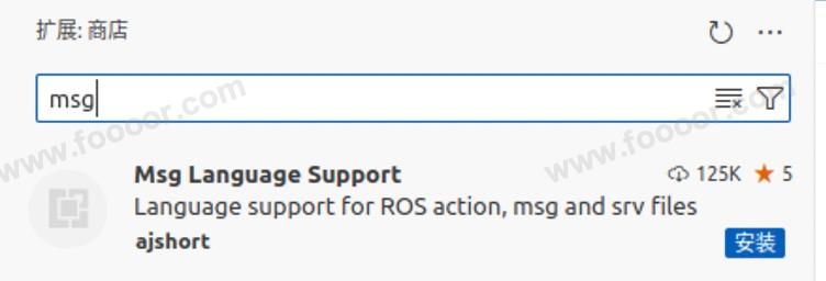 搜索 msg ,找到 Msg Language Support,我们后期会编写 msg 类型的文件,这个可以进行高亮提示等。