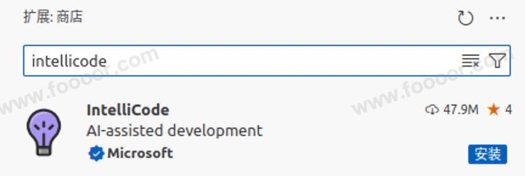 搜索 intellicode ,这个是人工智能代码提示的工具,可以帮助我们进行代码提示和补全,方便开发: