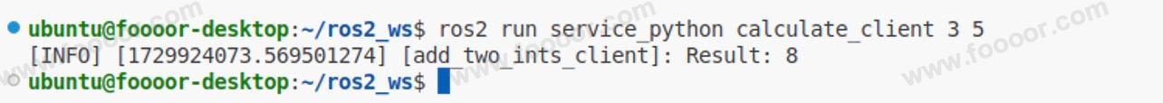 ros2 run service_python calculate_client 3 5后面的 3 和 5 是请求的参数,可以看到,客户端调用成功,如下: