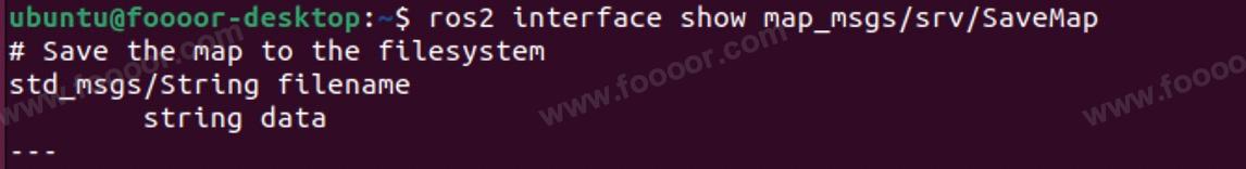 ros2 interface show map_msgs/srv/SaveMap可以看到通信接口的定义,如下: