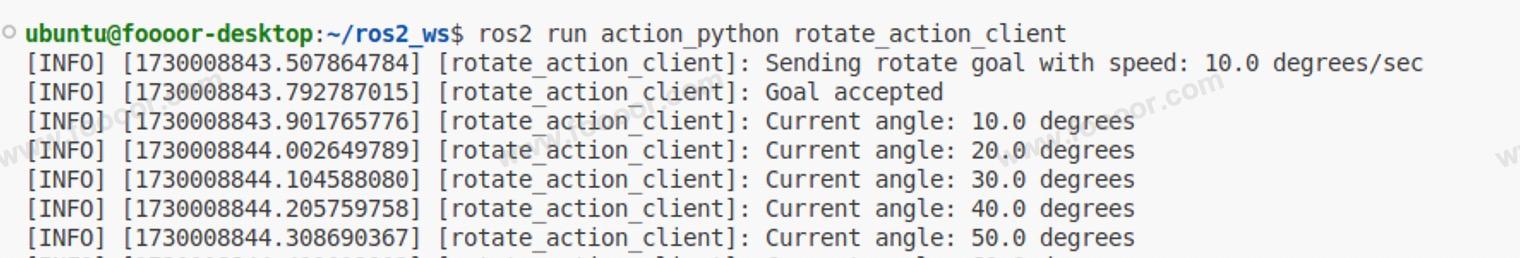 ros2 run action_cpp rotate_action_client可以看到,客户端调用成功,和 Python 实现一样。