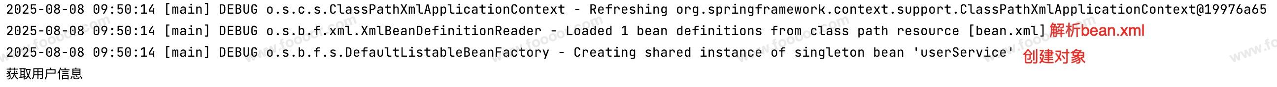 在上面运行的时候,除了打印我们自己的日志,没有其他任何日志输出。其实 Spring 是输出了很多日志,但是因为没有引入日志框架,所以没有打印。