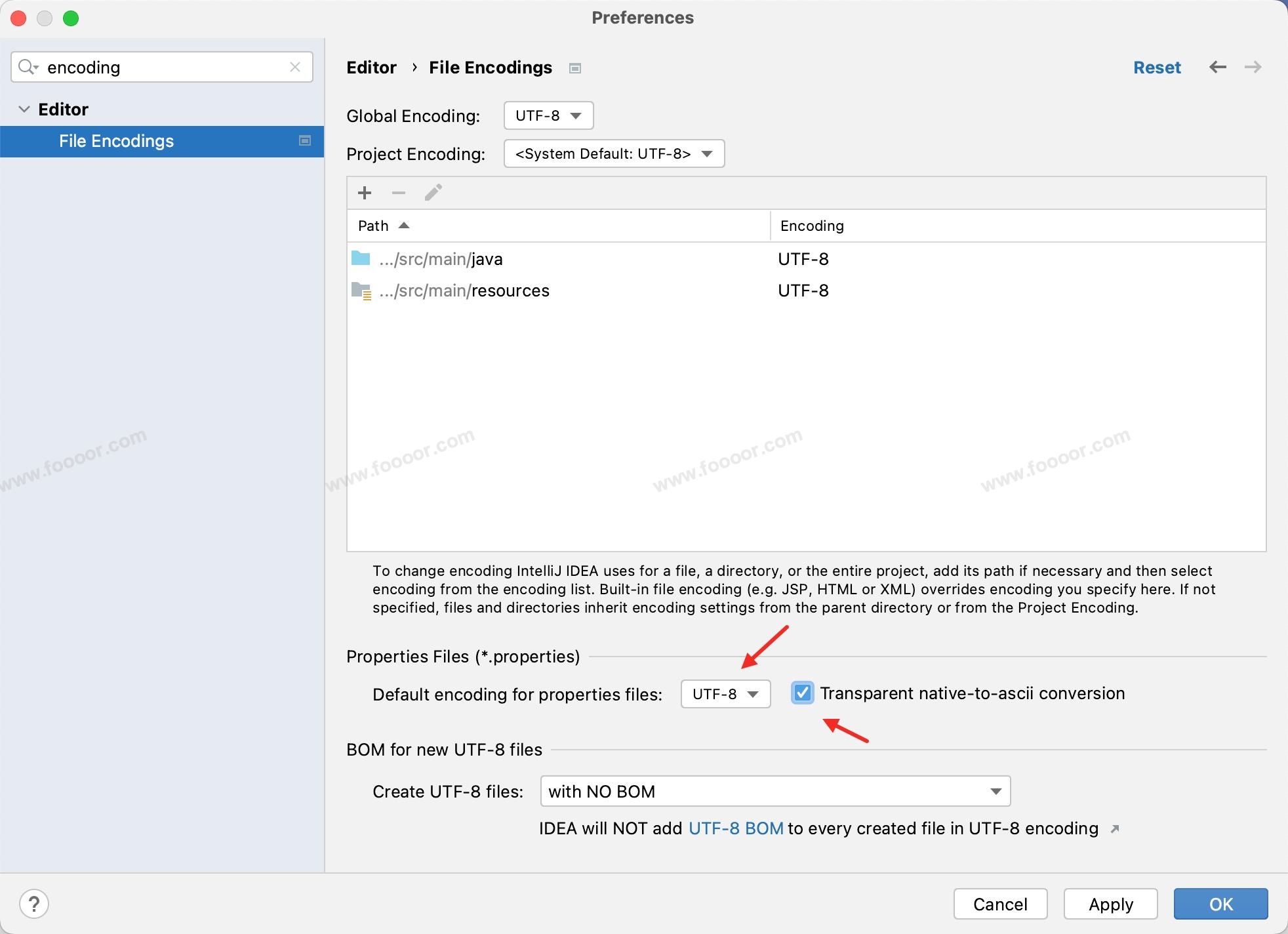 在创建资源文件之前,先检查一下 IDEA 的编码: