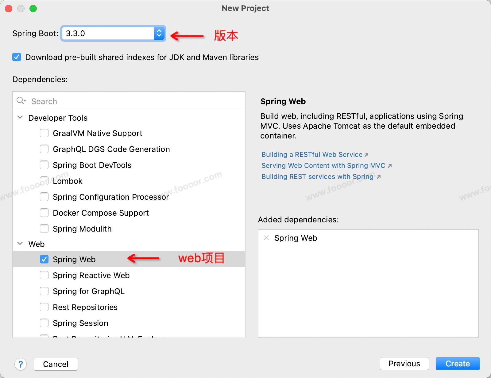 因为是 web 项目,所以勾选 Spring Web,会自动导入 SpringMVC 相关的依赖。
