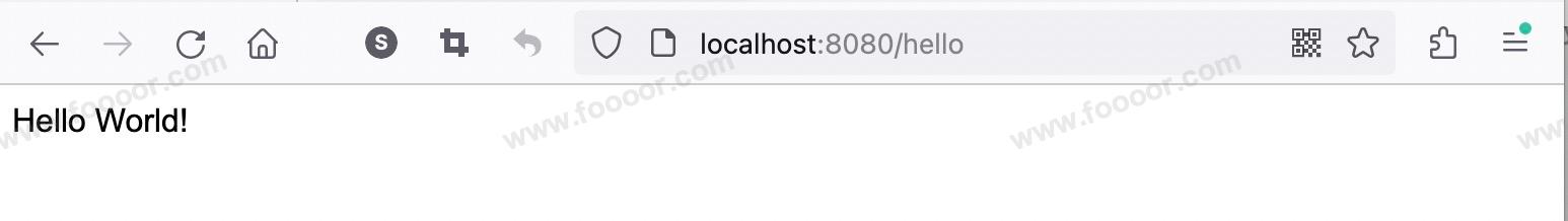 运行主启动类 HelloSpringBootApplication ,然后在浏览器访问接口: http://localhost:8080/hello