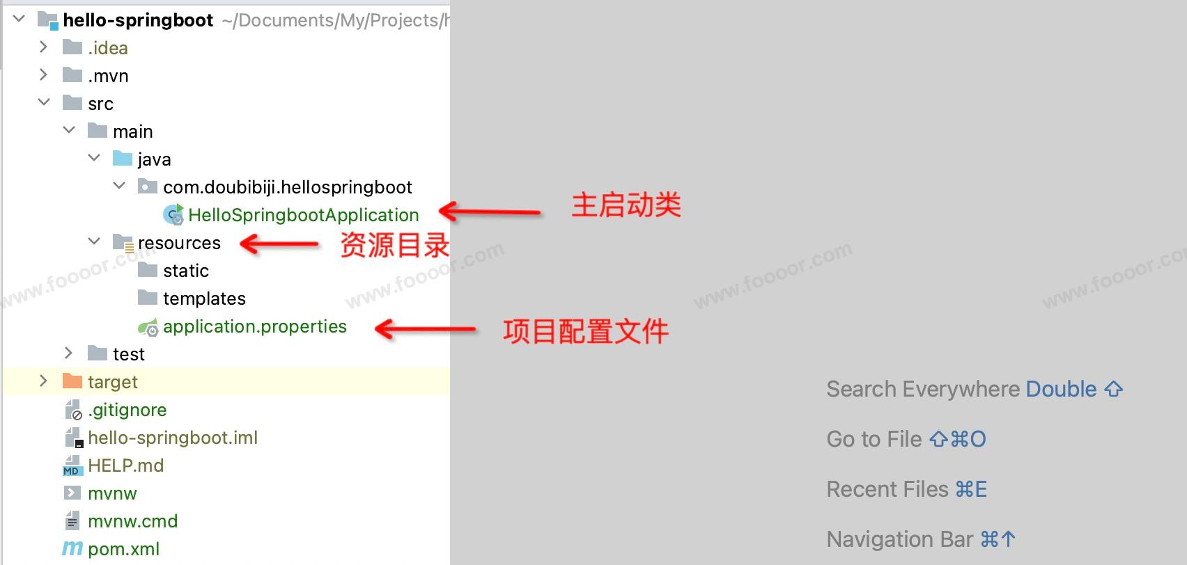 首先在创建一层 hellospringboot 包(其实不创建也没问题,只是增加项目级别的包,层次清晰),在 com.doubibiji.hellospringboot 包下创建 HelloSpringBootApplication 类(一般类名以Application结尾)。