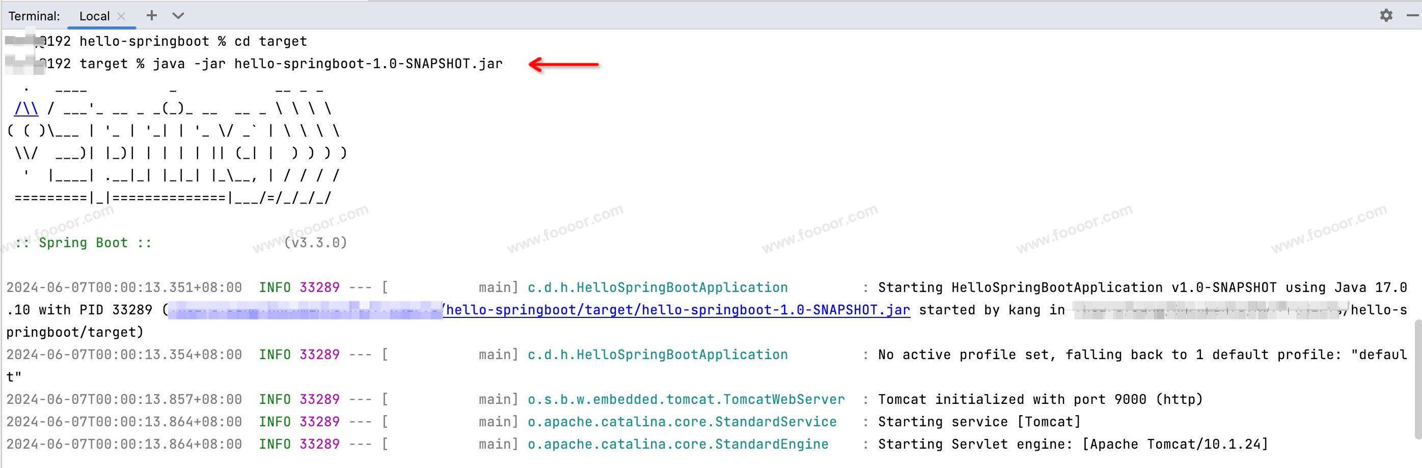java -jar hello-springboot-1.0-SNAPSHOT.jar运行效果: