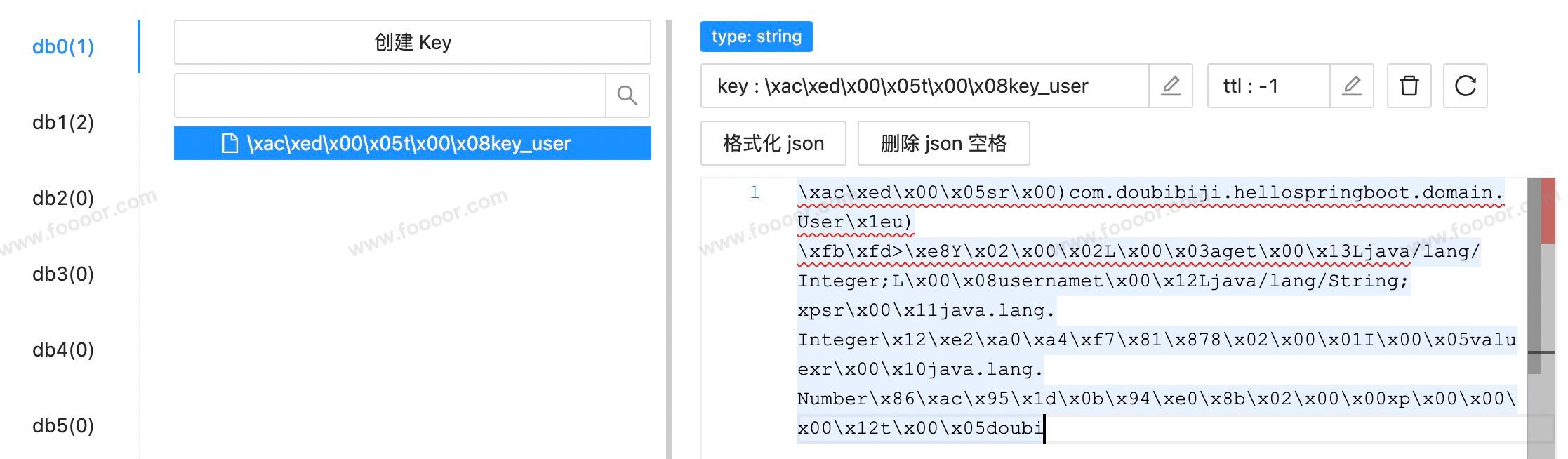 redisTemplate.opsForValue().set("key_user", user);