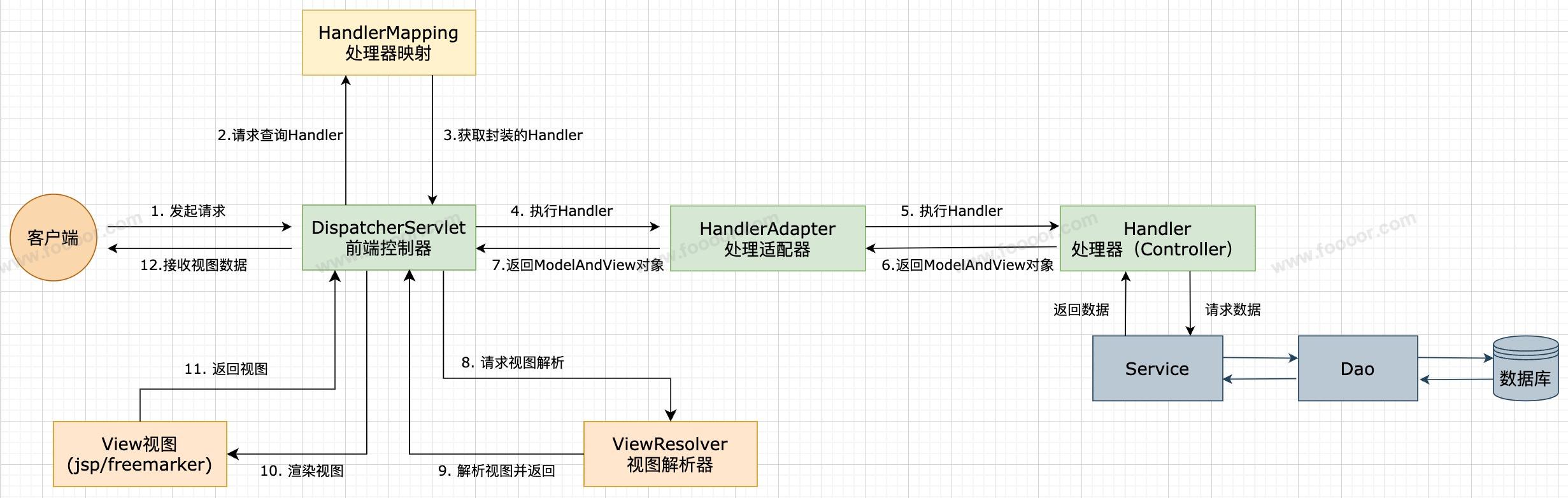 所以整个流程简单的说就是:请求被 Controller 接收后,返回视图名称,视图解析器找到对应的视图模板,结合数据生成 HTML 页面内容返回给浏览器,浏览器渲染并显示最终的页面。