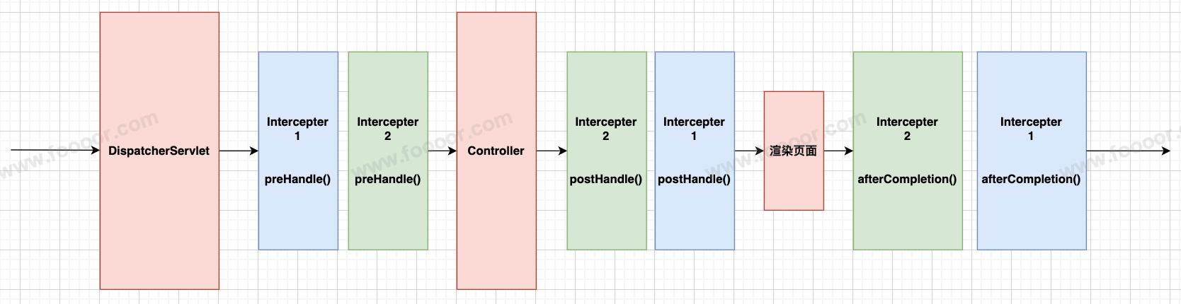 拦截器可以有多个,可以依次执行,各个拦截器方法执行的前后顺序如下: