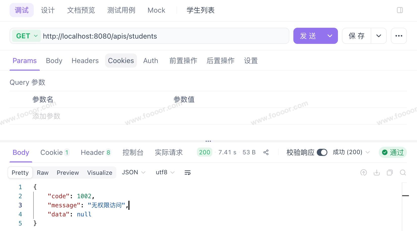 - 首先直接访问学生列表接口,查看是否能获取到数据