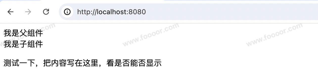 可以看到在父组件中,使用子组件的时候,在子组件标签中间添加的内容是看不见的。