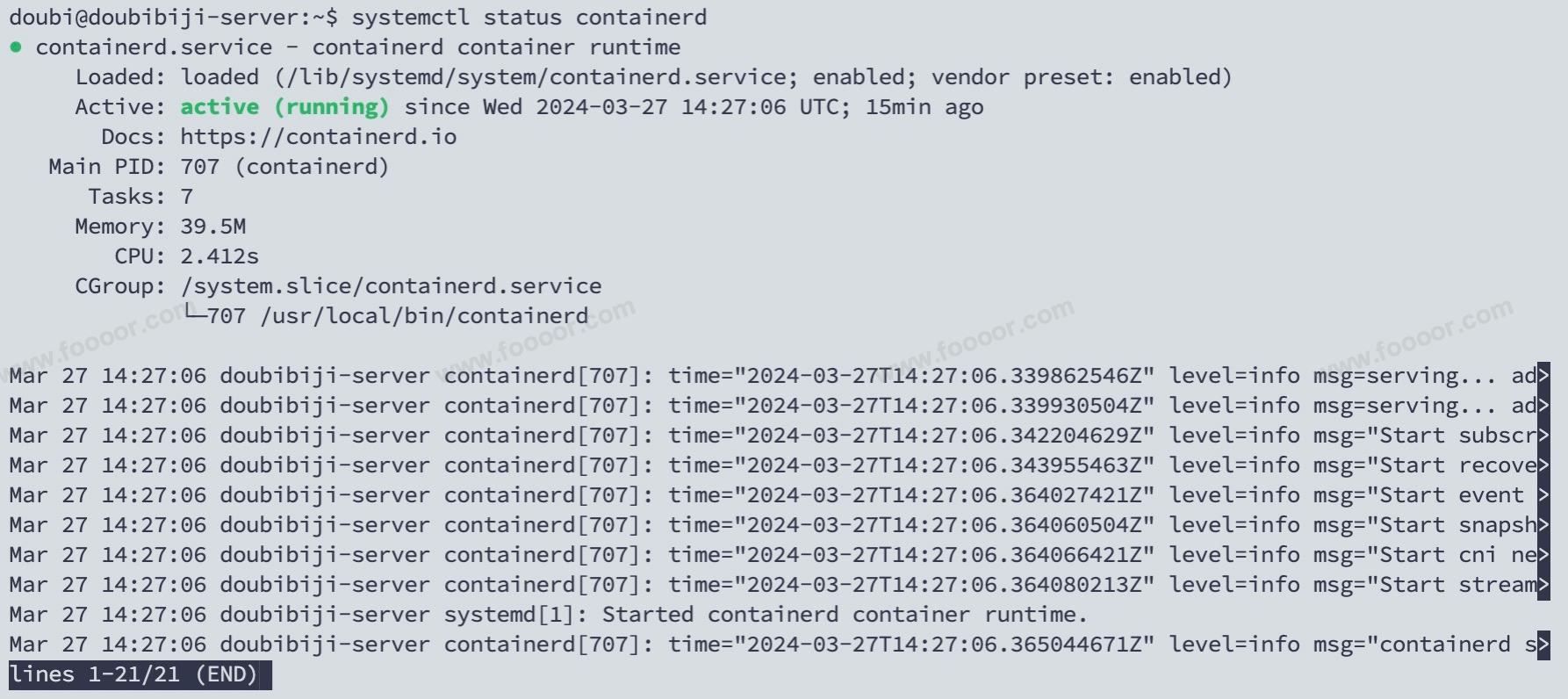 sudo cp usr/local/bin/* /usr/local/bin/为什么复制到 /usr/local/bin/,因为在解压的 etc/systemd/system 文件夹下有一个 containerd.service 文件,这个是 containerd 的服务文件,文件中指明了 ExecStart=/usr/local/bin/containerd ,也就是 containerd 可执行文件所在的位置,所以要放在 系统的 /usr/local/bin 目录下。